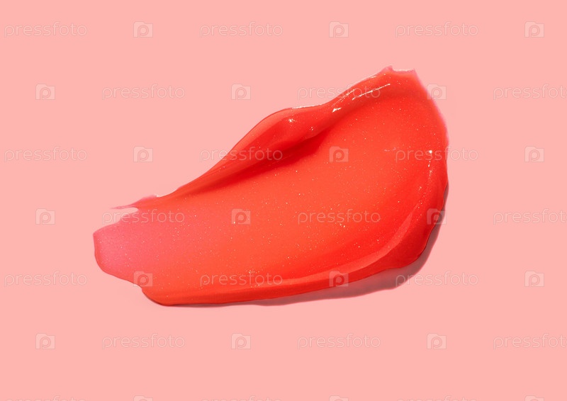 Косметический красный коралловый бальзам для губ, скраб для губ, образец косметической маски на розовом фоне