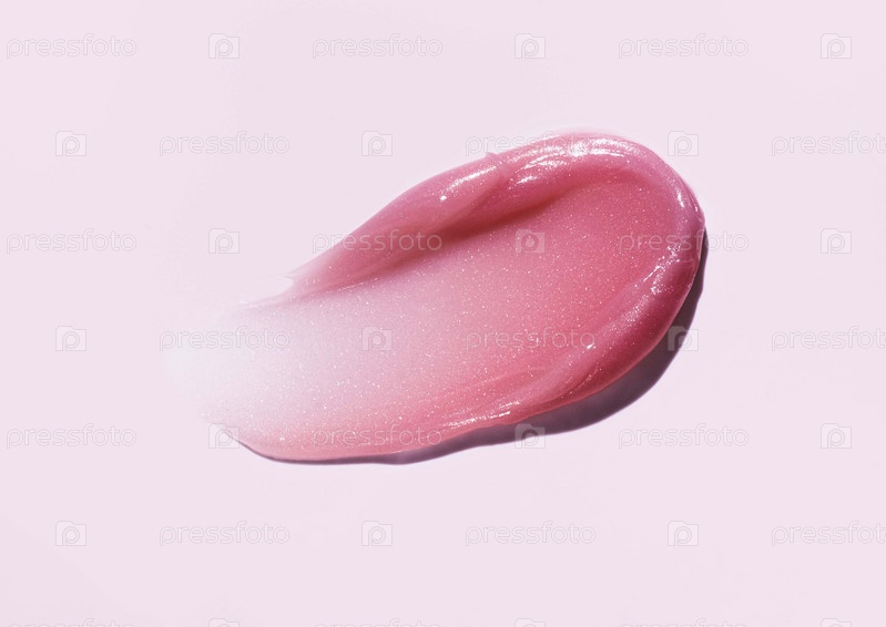 Косметический розовый мерцающий розовый бальзам для губ, соль или сахарный скраб, образец косметической маски на сиреневом фоне