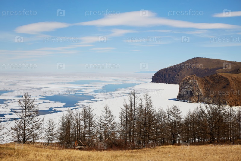 Север острова Ольхон весной. Прекрасный вид на горы