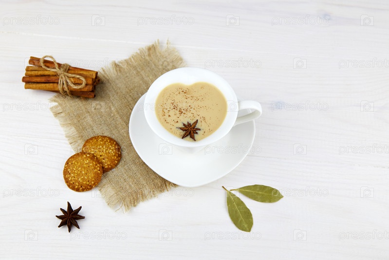 Чашка чая масала и печенье. Традиционный индийский чайный напиток