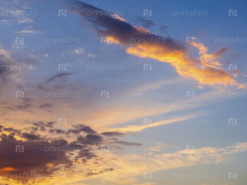 Красивое небо с облаками на рассвете. Абстрактный естественный облачный фон рассвета или закатного неба с разноцветными облаками