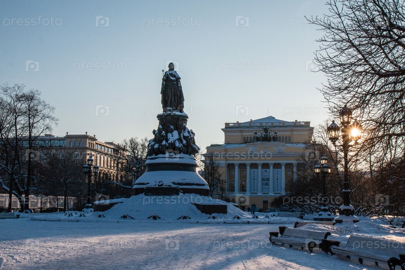 Санкт-Петербург, Екатерининский сад, памятник Екатерине Второй, зима