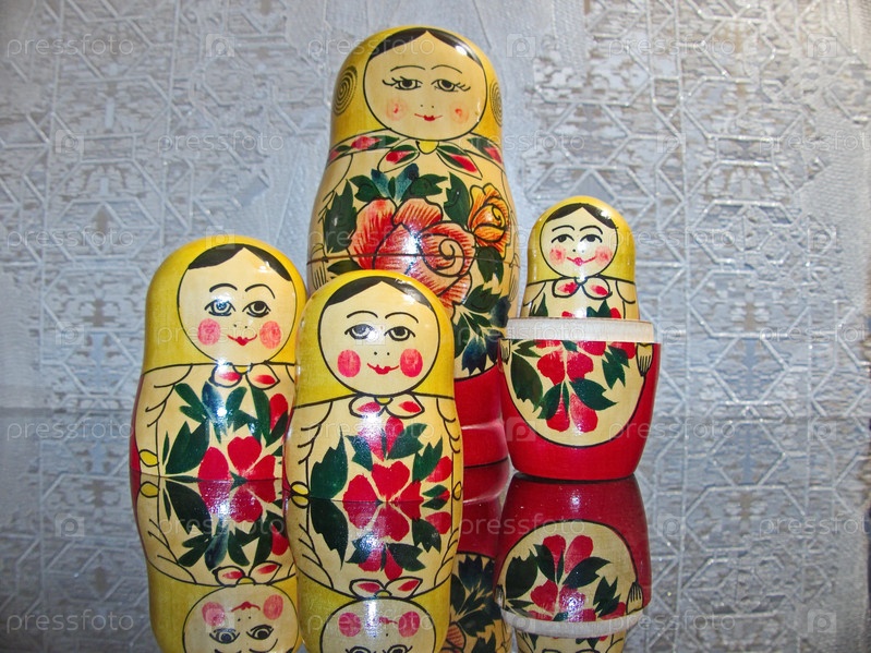 Матрешка-русская складная кукла из дерева, внутри которой куклы меньшего размера. Семеновская матрешка ярко раскрашена, с черными волосами, на голове платок
