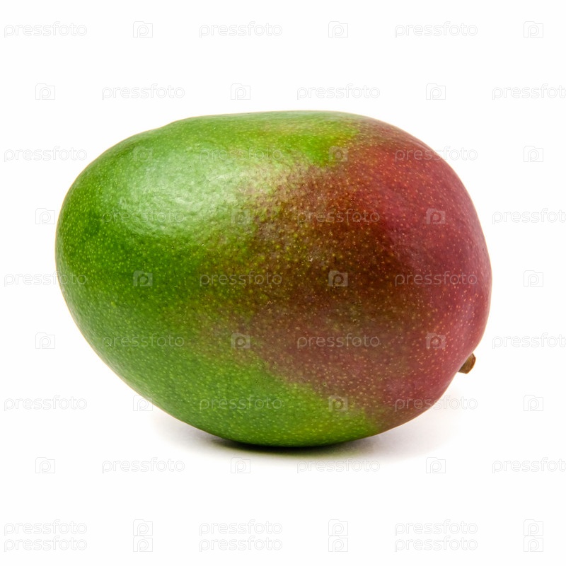 Зеленый красный спелый тропический фрукт манго, выделенный на белом фоне крупным планом