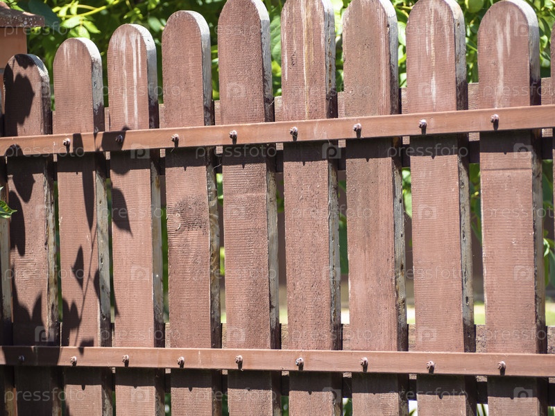 Внутренняя сторона забора сделана из коричневых деревянных досок. Крупный план старинного забора со двора