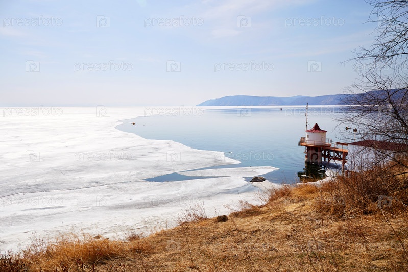 Байкал весной. Льдины и открытая вода. село Листвянка