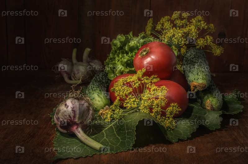 Спелые свежие овощи на темном деревянном фоне