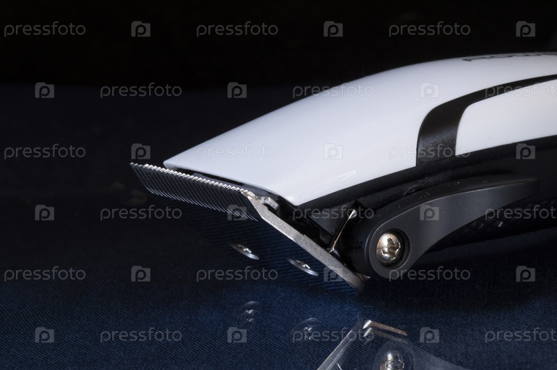Электрическая бритва для стрижки волос лежит на стеклянном столе