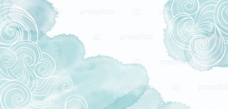 Абстрактное искусство фон на морскую тему с волнами. Вектор. Акварельная ручная роспись для настенного искусства, украшения стен, плакаты, отпечатки на холсте, открытки и дизайн обложки