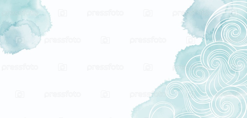 Готовый дизайн на морскую тематику с волнами, акварелью и местом для текста. Векторный макет декоративной поздравительной открытки или приглашения дизайн фона