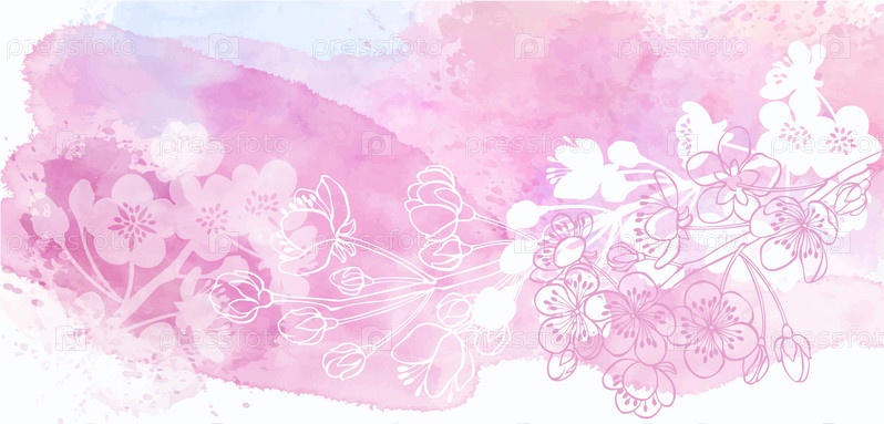 Художественный ботанический фоновый вектор. Роскошный дизайн с цветами абрикосового дерева и акварелью. Дизайн шаблона для текста, упаковки и печати