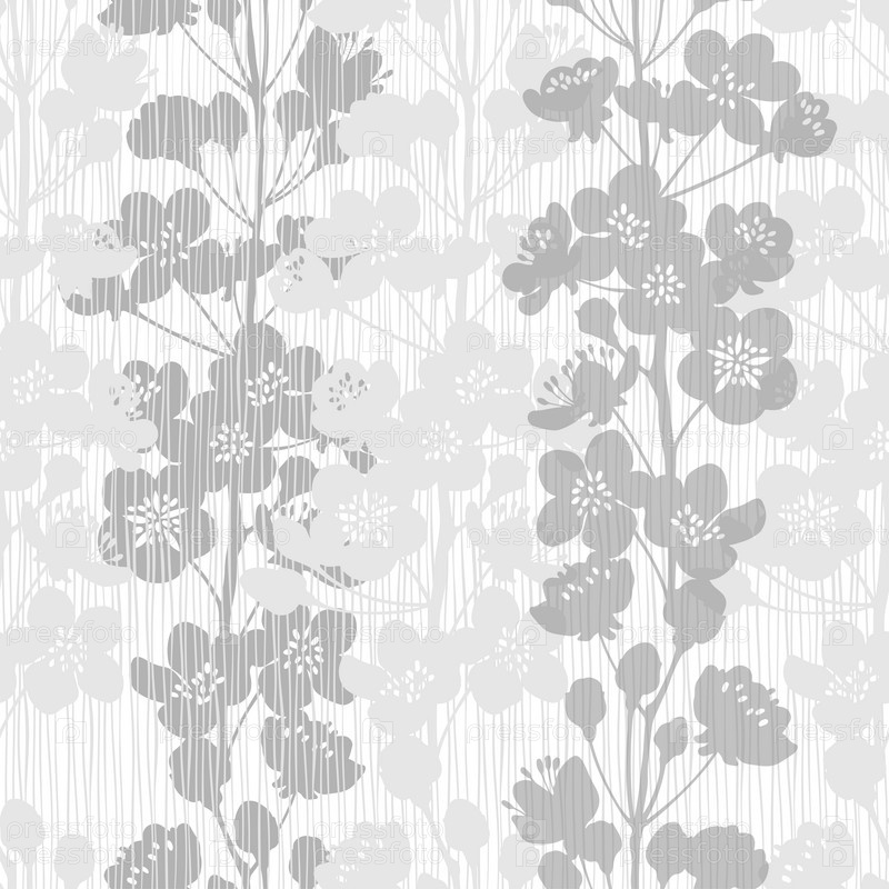 Бесшовный узор с цветущими ветвями абрикоса. Векторная иллюстрация. Цветочные силуэты. Идеально подходит для шаблонов дизайна, обоев, упаковки, ткани и текстиля