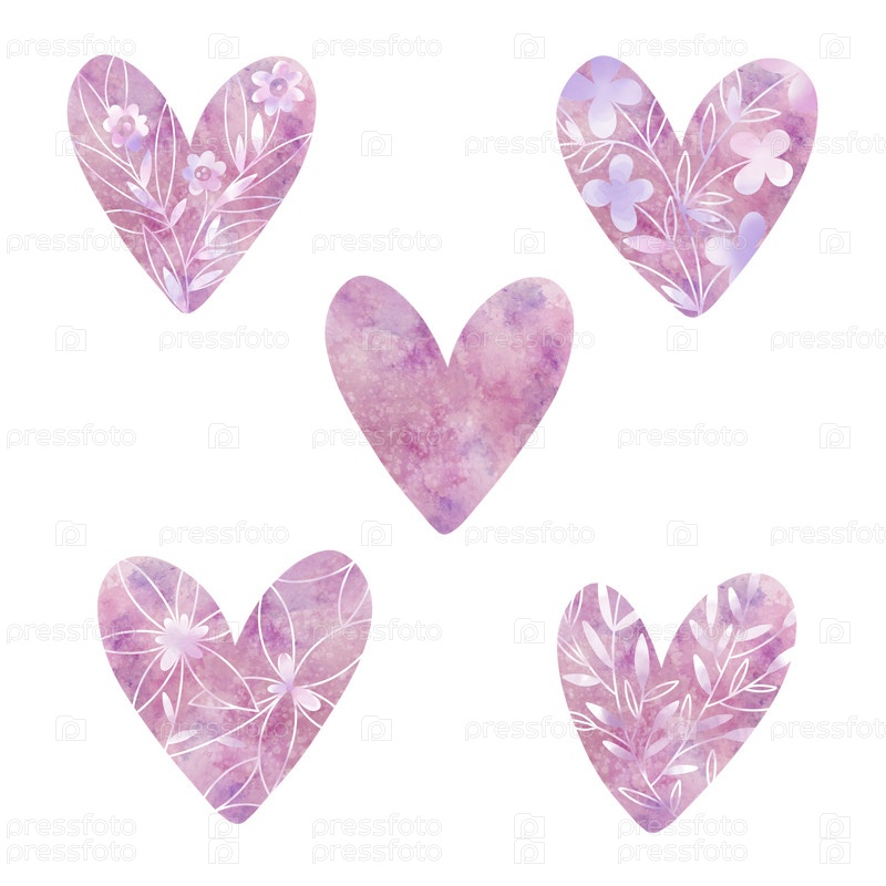 Набор акварельных сердец. Ручной обращается сердца, изолированные на белом фоне. Идеально подходит в качестве поздравительной открытки, приглашения, элемента дизайна