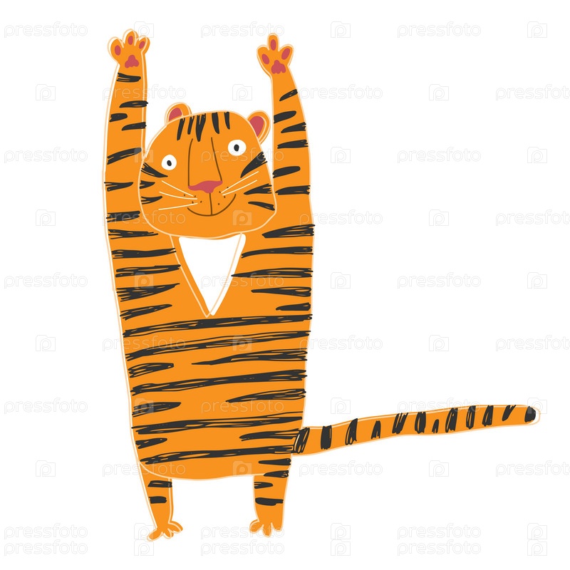 Симпатичный мультяшный тигр. Векторная карикатура с местом для текста, поздравительной открытки или приглашения на белом фоне. Животное символ нового 2022 года