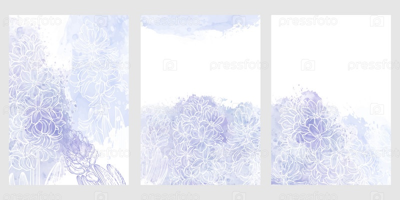Предварительно сделанный дизайн с гиацинтами, очень реалистичным акварельным всплеском и местом для текста. Векторный макет декоративной открытки или приглашения дизайн фона, дизайн обоев. Весенняя тема