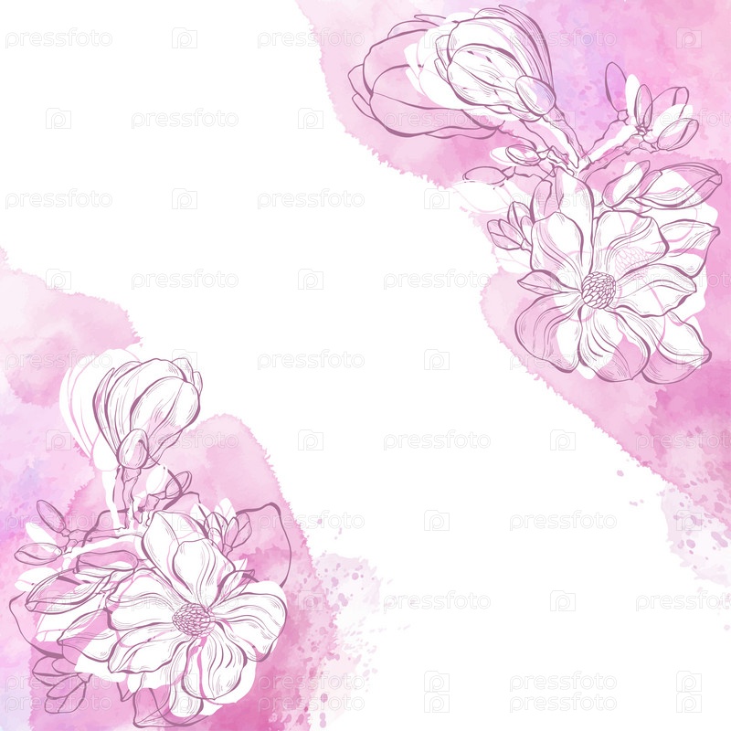 Абстрактное искусство ботанический фон вектор. Роскошный дизайн обоев с цветами магнолии на розовом акварельном фоне. Минимальный дизайн для текста, упаковки и печати