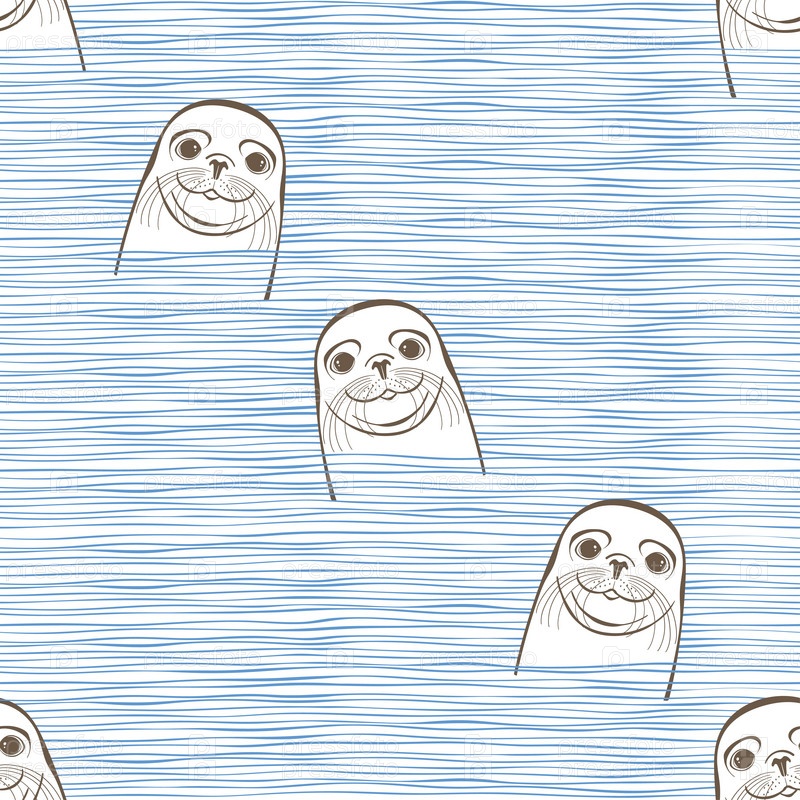 Тюлень, милое морское животное. Бесшовный векторный рисунок. Идеально подходит для шаблонов дизайна, обоев, упаковки, ткани и текстиля
