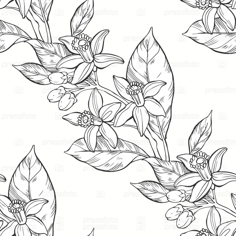 Цветочный бесшовный узор с нарисованными вручную цветами нероли на белом. Идеально подходит для шаблонов дизайна, обоев, упаковки, ткани и текстиля