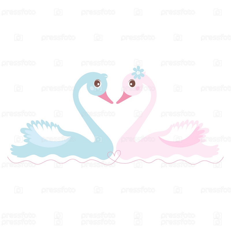 Лебеди. Готовый дизайн пригласительного или поздравительной открытки на свадьбу, романтический вечер, день святого Валентина. Мультфильм рисованной векторные иллюстрации на белом