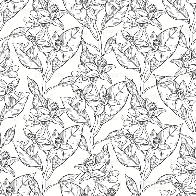Цветочный бесшовный узор с нарисованными вручную цветами нероли на белом. Идеально подходит для шаблонов дизайна, обоев, упаковки, ткани и текстиля