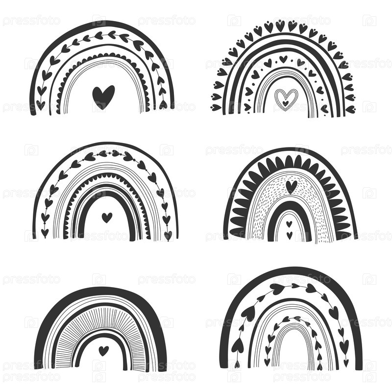 Симпатичная радуга с сердечками. Векторный набор. Изолированная иллюстрация на белом. Идеально подходит для украшения, дизайна логотипа, детского приглашения, поздравительных открыток