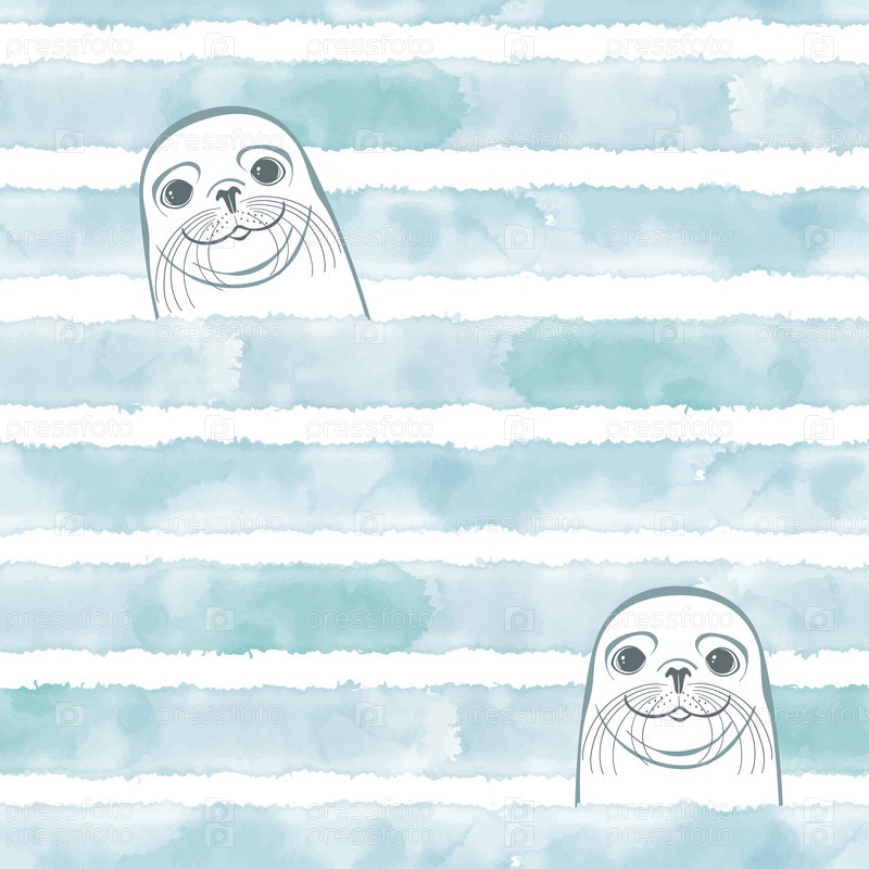 Тюлень, милое морское животное. Бесшовный векторный рисунок. Идеально подходит для шаблонов дизайна, обоев, упаковки, ткани и текстиля