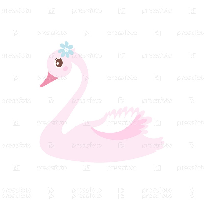 Милая маленькая девочка-лебедь на белом. Мультфильм рисованной векторные иллюстрации. Может использоваться для печати футболок, детской одежды, дизайна одежды, пригласительного билета на детскую вечеринку