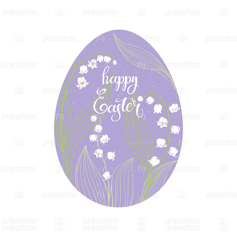 Счастливой Пасхи. Пасхальное яйцо с ландышами. Векторная иллюстрация на белом фоне. Идеально подходит для поздравительных открыток, приглашений и в качестве элемента дизайна