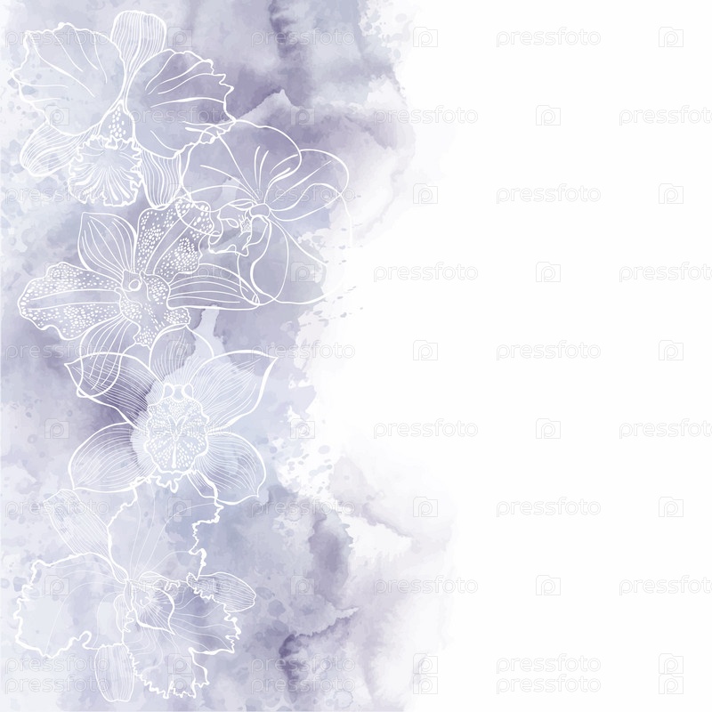 Цветочный фон с орхидеями на акварели. Может быть открытка, приглашение, элемент дизайна