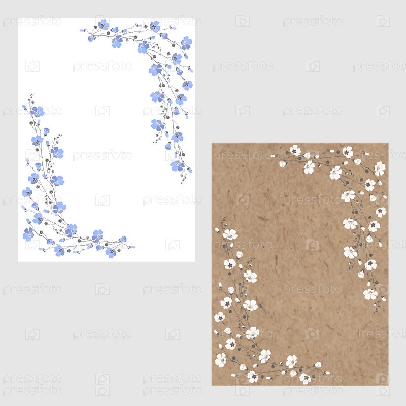 Готовый дизайн на цветочную тематику и место для текста на белой и крафтовой бумаге. Векторный макет декоративной поздравительной открытки или приглашения дизайн фона. Два разных варианта