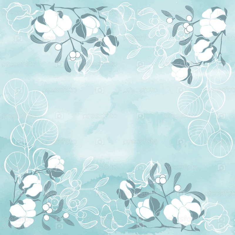 Готовый дизайн на зимнюю или рождественскую тематику, цветочные, акварельные пятна и место для текста. Векторный макет декоративной поздравительной открытки или приглашения дизайн фона
