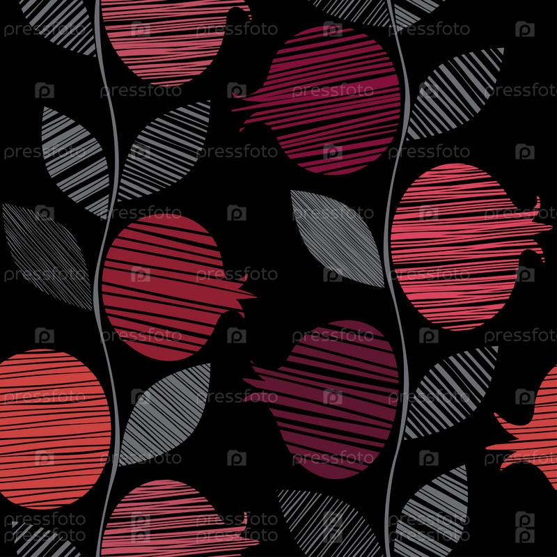 Бесшовный узор с гранатами на черном. Вектор. Фон искусства еды