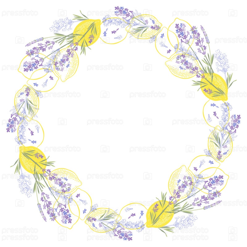Лаванда и лимоны. Круглая цветочная рамка. Векторный макет декоративной открытки или приглашения, меню, элемент дизайна фона