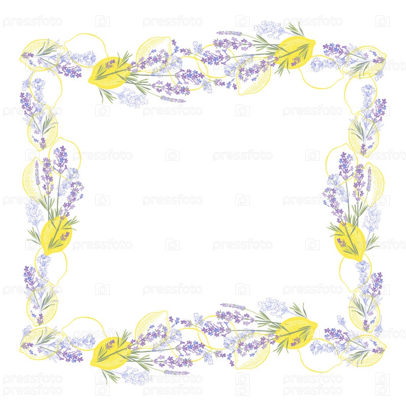 Лаванда и лимоны. Квадратная цветочная рамка. Векторный макет декоративной открытки или приглашения, меню, элемент дизайна фона