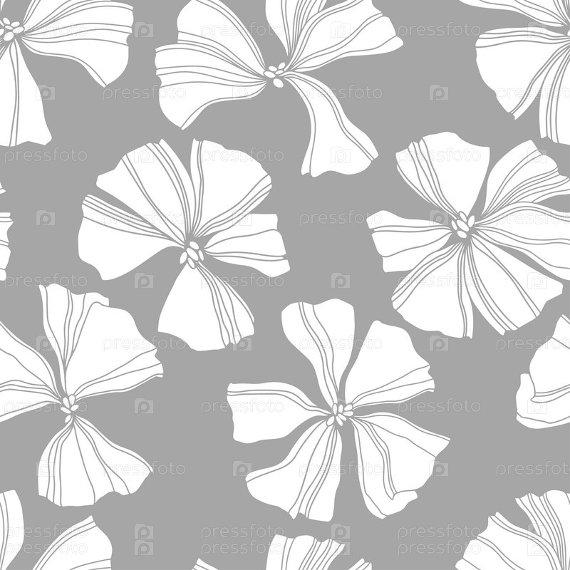 Бесшовный узор с абстрактными цветами на сером фоне. Монохромная векторная иллюстрация. Цветочный фон. Идеально подходит для шаблонов дизайна, обоев, упаковки, ткани и текстиля