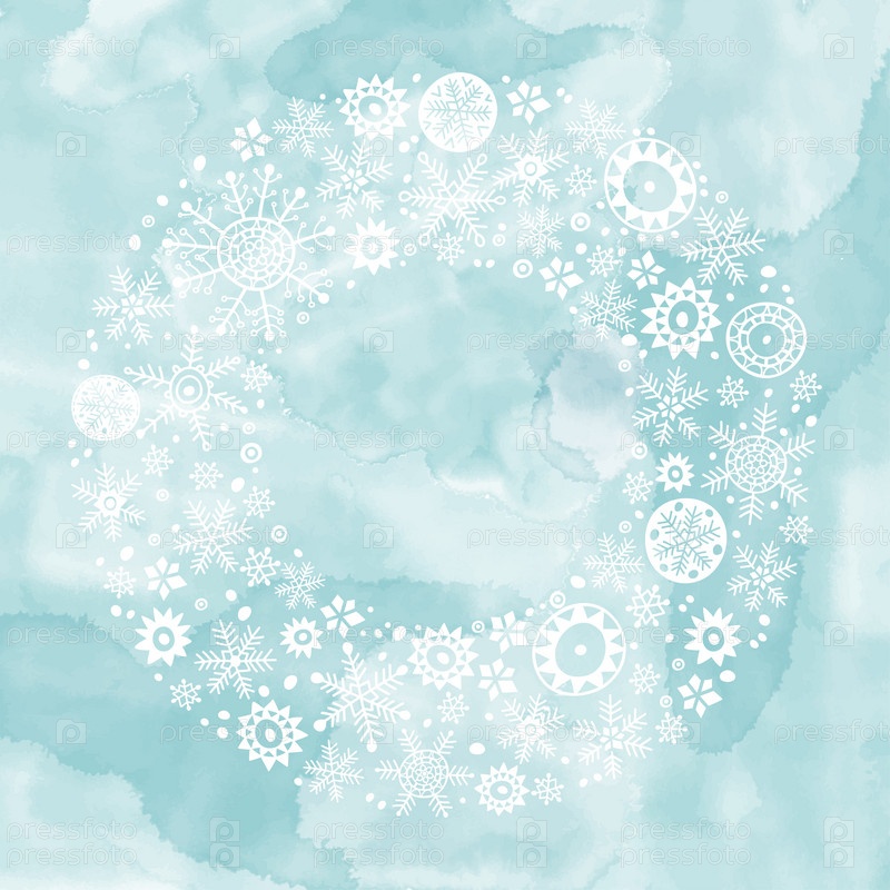 Круглая векторная снежная рамка. Праздничная зимняя иллюстрация с местом для текста на синем акварельном фоне. Это может быть приглашение, поздравительная открытка, элемент дизайна