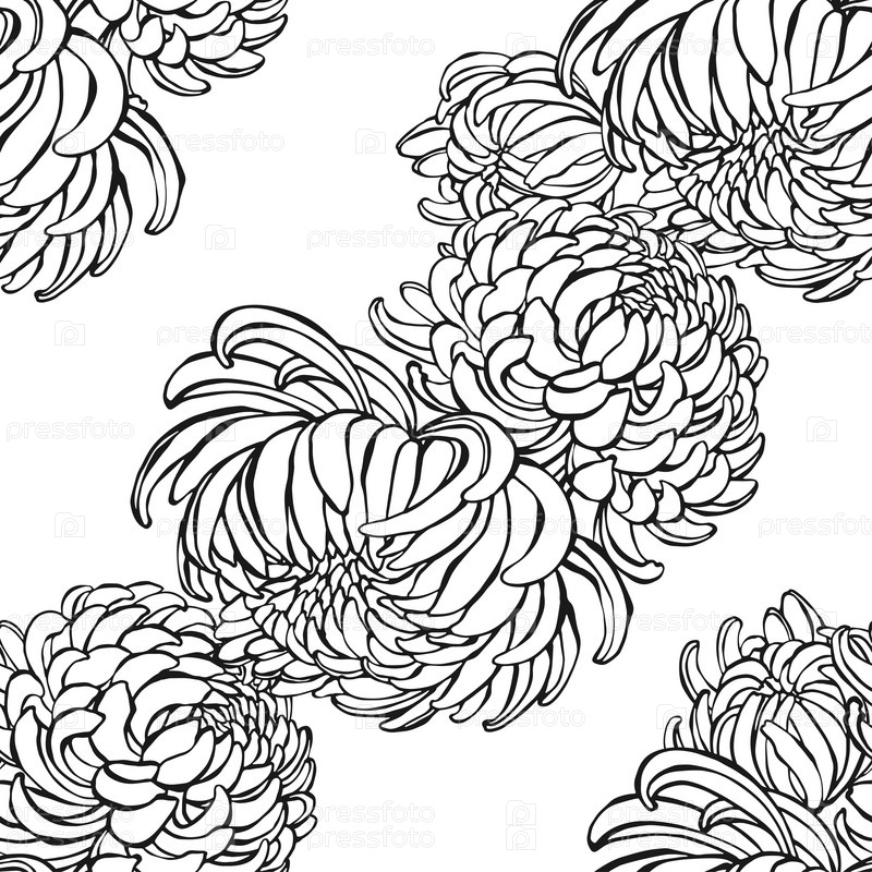 Хризантемы на белом фоне. Бесшовный векторный рисунок. Цветочный фон. Идеально подходит для шаблонов дизайна, обоев, упаковки, ткани и текстиля