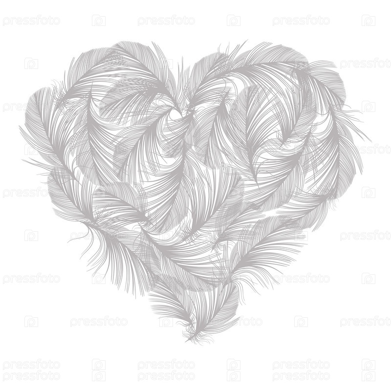 Пушистое сердце из перьев. Романтическая векторная иллюстрация изолирована на белом. Идеально подходит в качестве поздравительной открытки, приглашения, элемента дизайна для свадьбы, дня святого валентина, вечеринки, свидания, благодарственной открытки