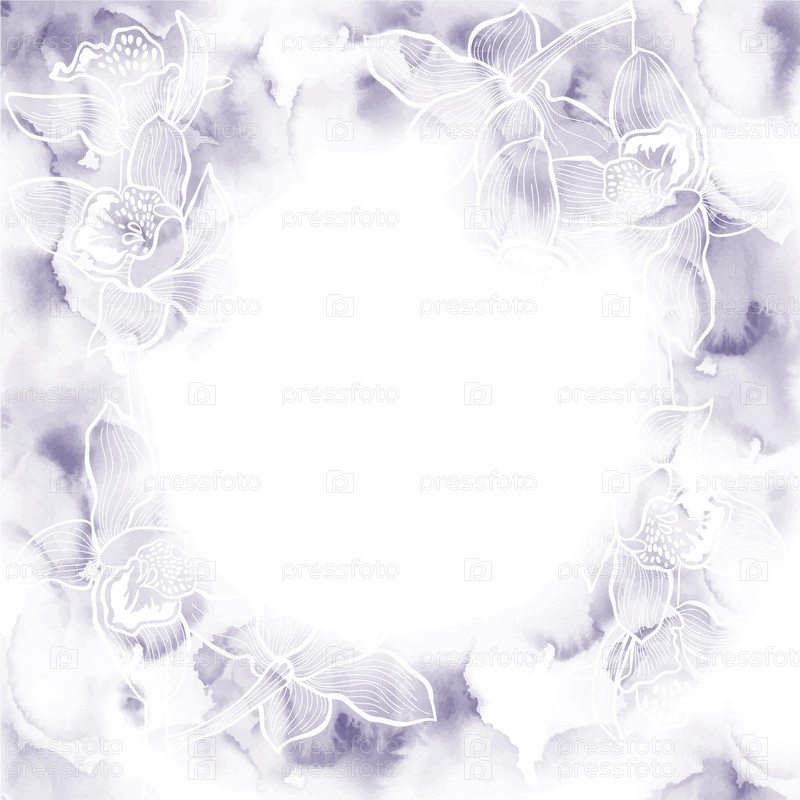 Цветочный фон с орхидеями на акварели. Может быть открытка, приглашение, элемент дизайна