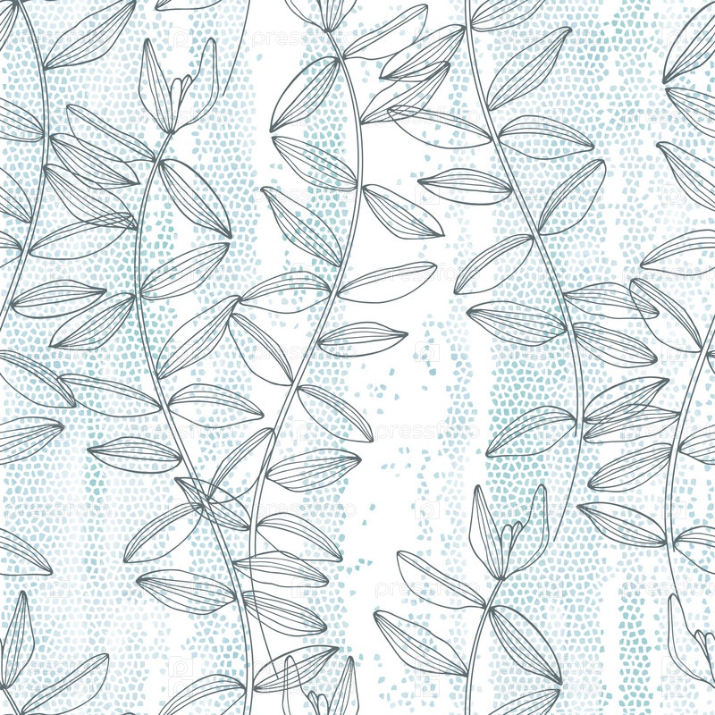 Водоросли. Бесшовный векторный рисунок с подводными растениями на синем мозаичном акварельном фоне. Абстрактная цветочная текстура. Идеально подходит для шаблонов дизайна, обоев, упаковки, ткани и текстиля
