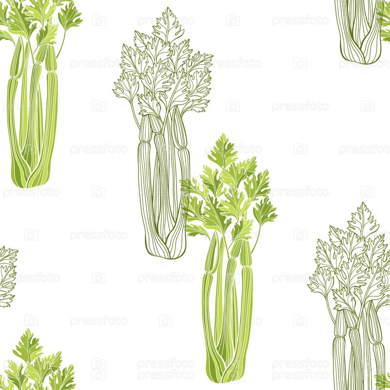 Сельдерей. Бесшовный векторный рисунок на белом. Продовольственный фон