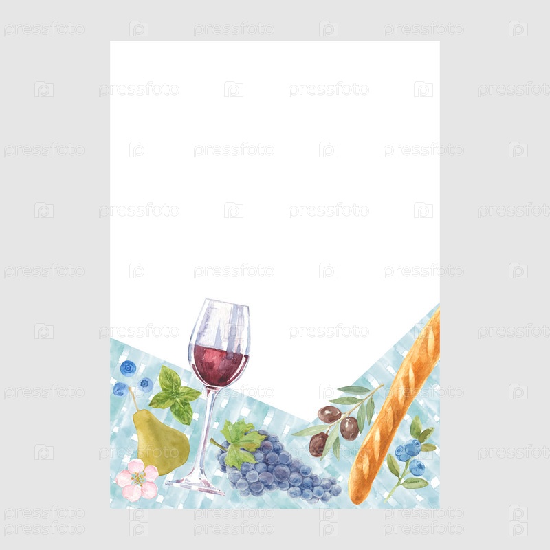 Карточка с акварельными иллюстрациями и местом для текста. Концепция орнамента для пикника. плакат, пригласить. Векторный макет декоративной поздравительной открытки или приглашения дизайн фона