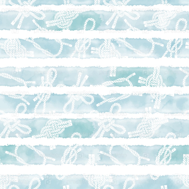 Бесшовный рисунок с морскими узлами на полосатом акварельном фоне. Вектор. Идеально подходит для шаблонов дизайна, обоев, упаковки, ткани и текстиля