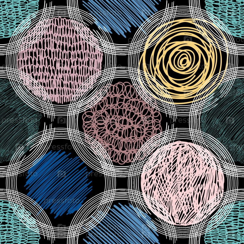Круги. Бесшовный абстрактный узор на черном фоне. Векторная иллюстрация