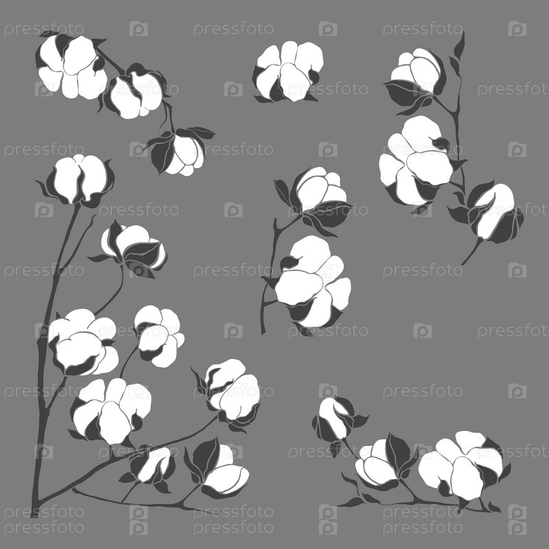 Набор хлопка, изолированные на сером фоне. Ручная рисованная векторная иллюстрация, эскиз. Элементы для дизайна