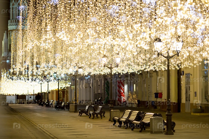 Новогоднее украшение Красной площади. Гирлянды, елочки, огоньки. Красивые праздничные пейзажи в городе Москве. Россия