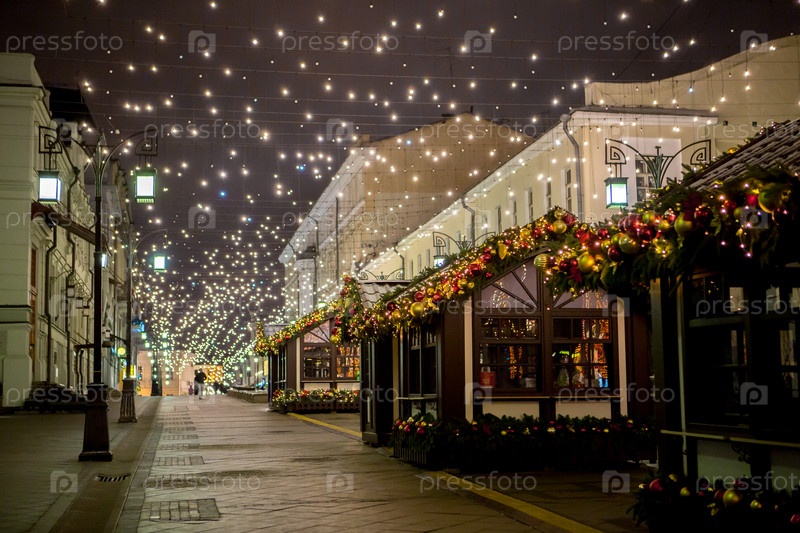 Новогоднее украшение Красной площади. Гирлянды, елочки, огоньки. Красивые праздничные пейзажи в городе Москве. Россия