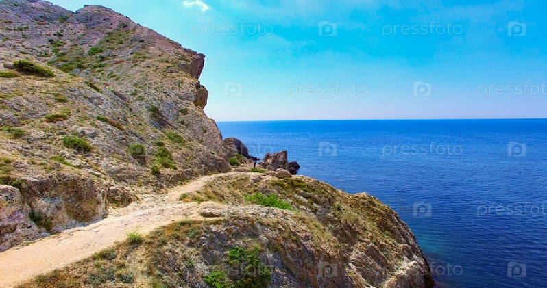 Морской пейзаж с видом на горы, покрытые растительностью