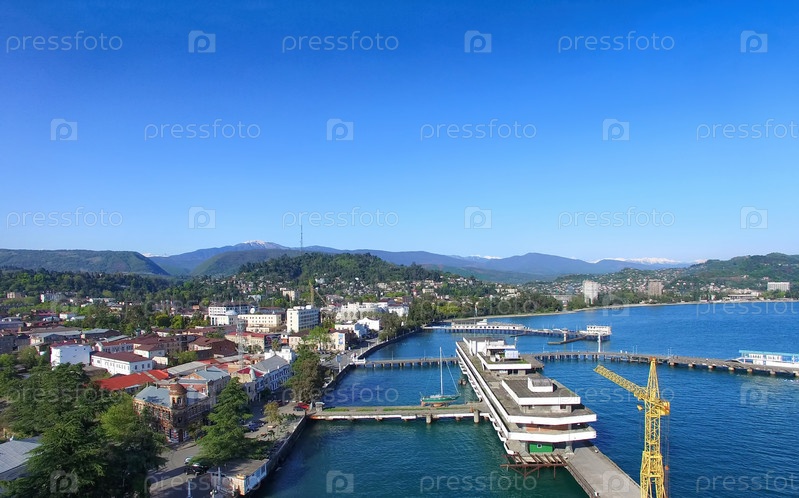 Сухуми, Абхазия. Вид с воздуха на городской пейзаж с видом на морской вокзал