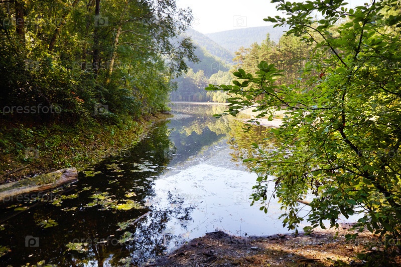 Озеро посреди леса. Красивый лесной пейзаж